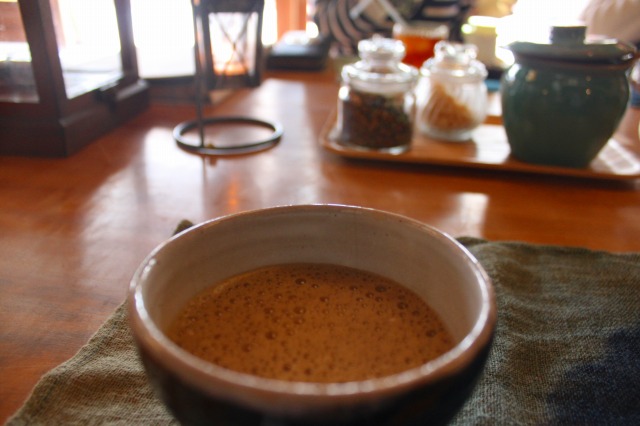 5杯でそれなりに満足し、食器を下げてもらって運ばれてきたほうじ茶ラテを飲んでほっこりと。