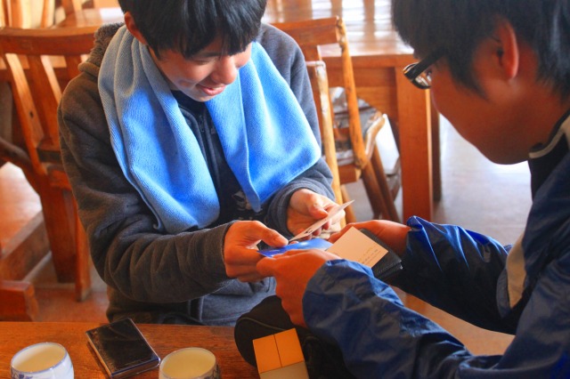 休憩所にパソコンとかを展開しているので一人ずつ行くことに。