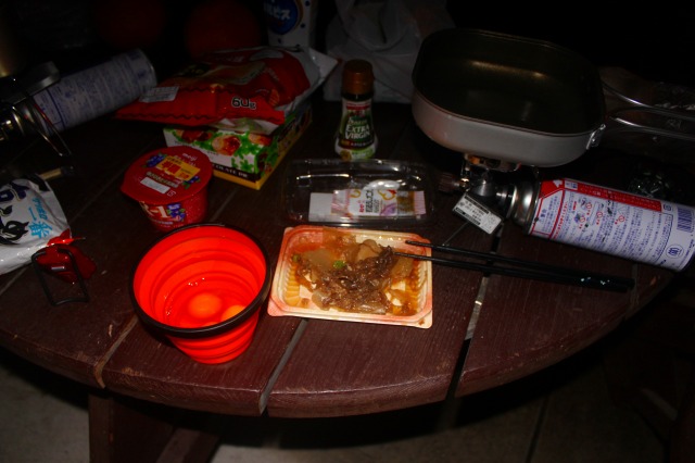 たけも君がテントに入るなり「どっかで爆竹買ってこよう」だの「犬が来てテントにマーキングすればいいのに」と本人が居ないのをいい事に言いたい放題。