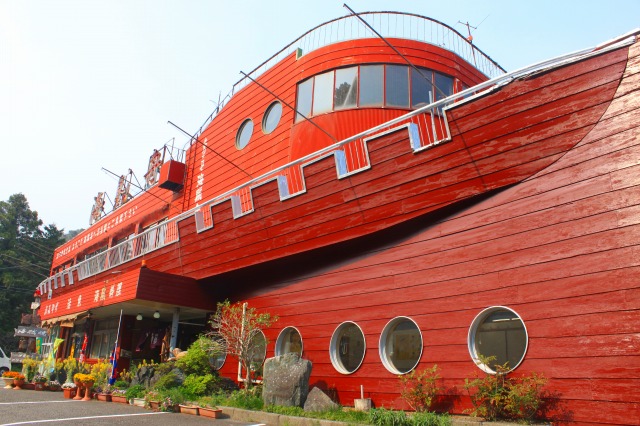 途中、山の中にあった海賊船。