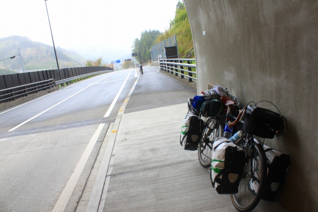 トンネルで雨宿り。