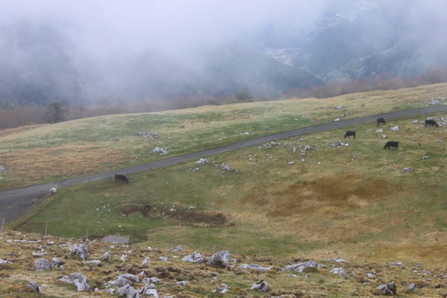 カルスト高原を眺めたり、牛にガン飛ばされたり。