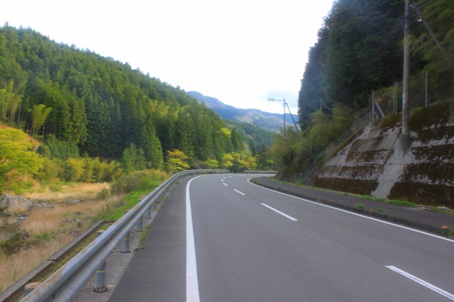 これ国道かよ! と、突っ込みを入れたくなる感じの山道を走る。