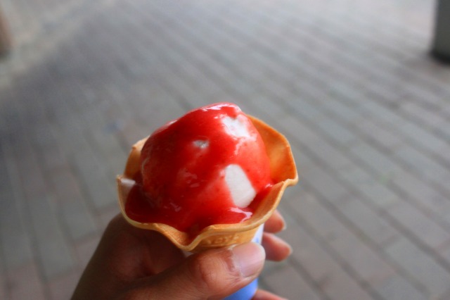 今日の出発地点、布施が坂に戻ってヨモギアイス。