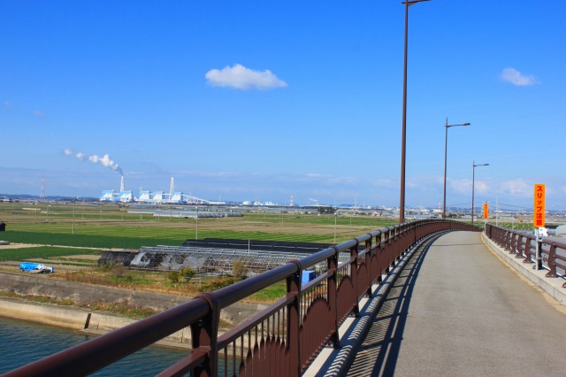 周囲の人に聞こうにも、人っ子一人居ないので太陽を頼りに知多半島方面へ向かう。