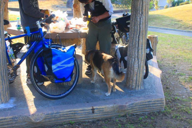 テントを片付けたり干したりなんだりしてると犬がやってくる。