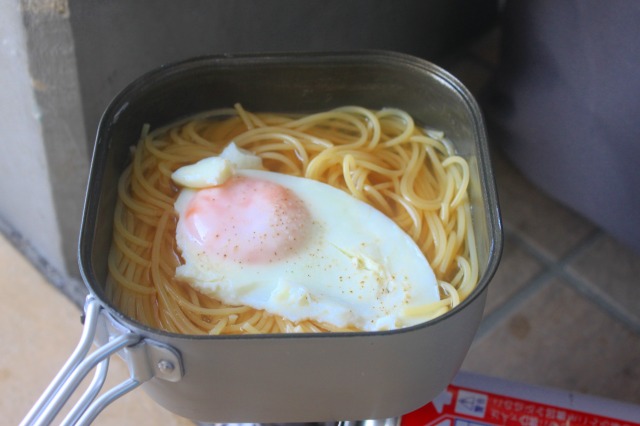 そっぴーさんからゆで卵を頂き、スパゲッティを茹でる。