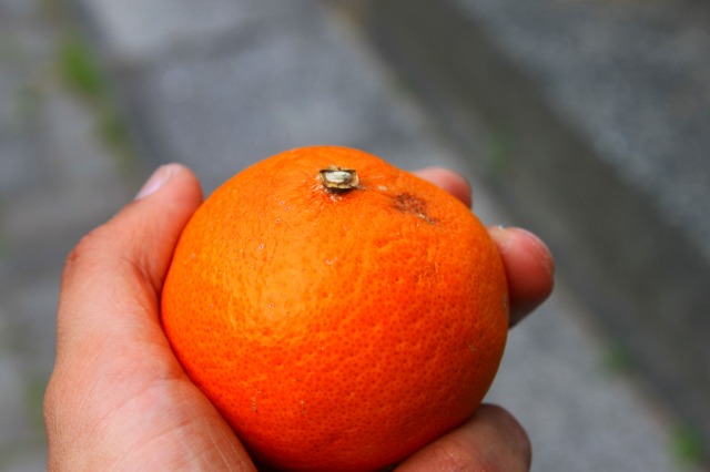 坂を汗だくになりながら上っていると、車に乗った女性に伊予柑(?)を頂く