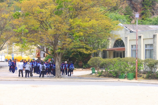 で、地元がどうかは知らんが毒ガス研究所の説明を受ける……中学生かな?