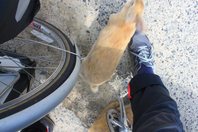 自転車を止めると、近寄ってきて餌が貰えないのかと期待する為