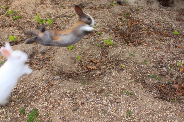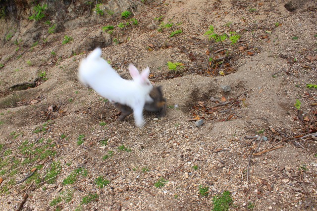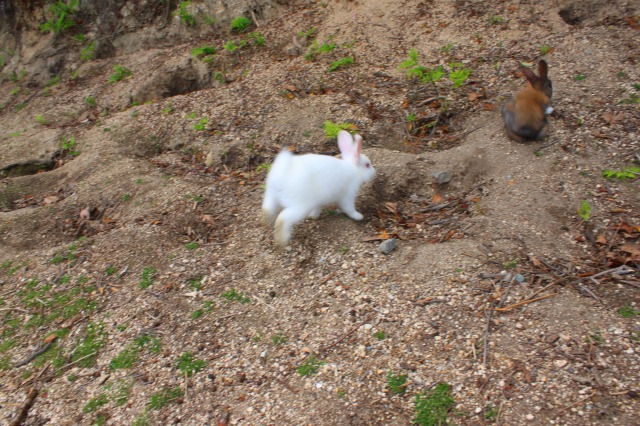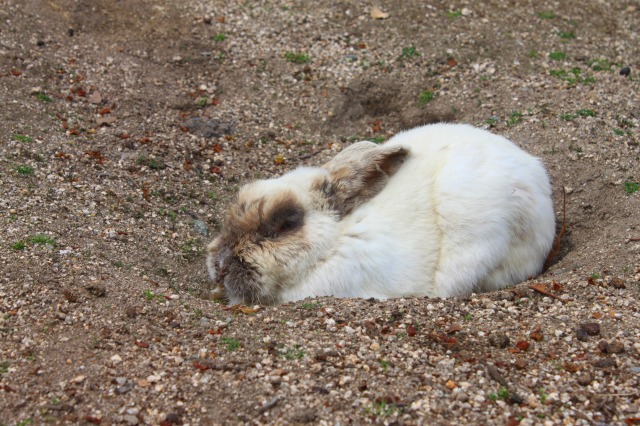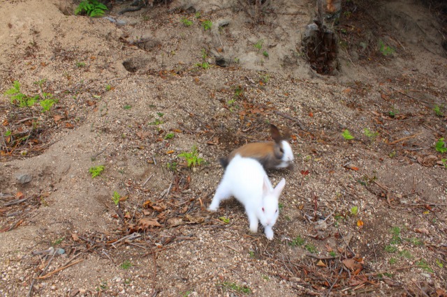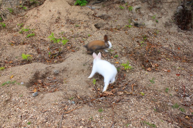 この島のうさぎ達は、一カ所にまとまって居るのではなく