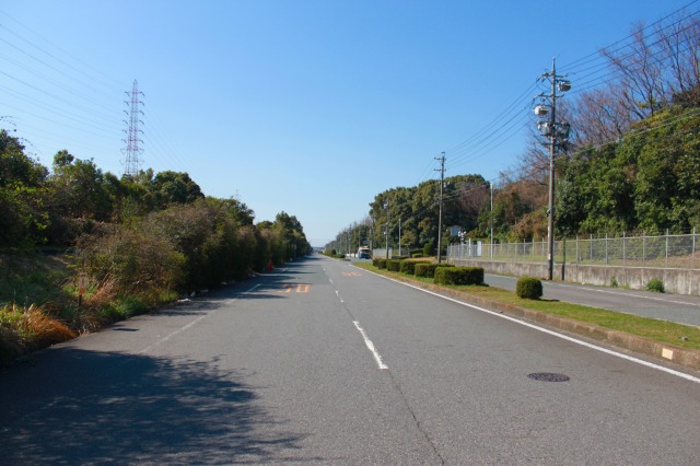 ひたすら真っ直ぐなこの道は、休日だから車もほとんど通らず、走りやすい。