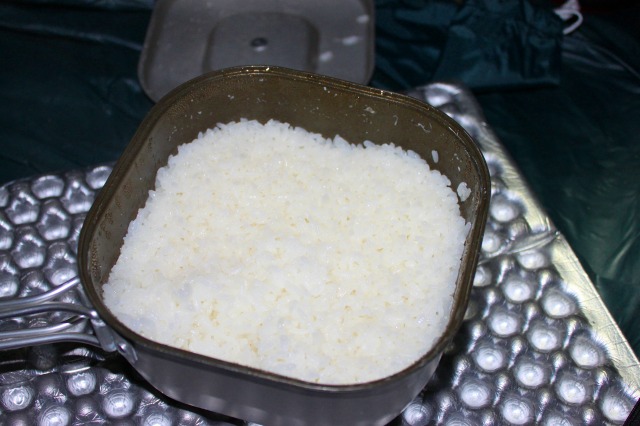 で、キャンプサイトに戻ってテント張って、ご飯を水に浸す。