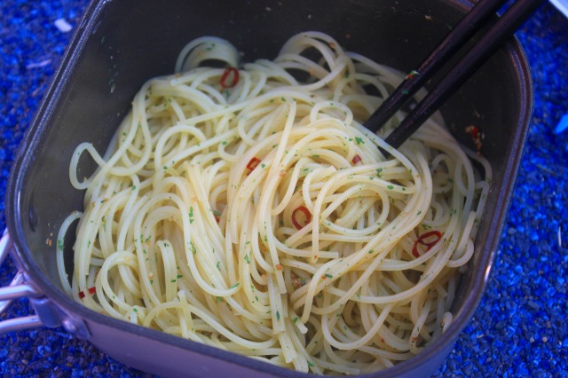 人が来ないのをいい事にテントと寝袋を干しながら朝食。