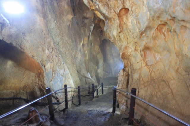 手にして懐中電灯の電源を入れて鍾乳洞内部へ。