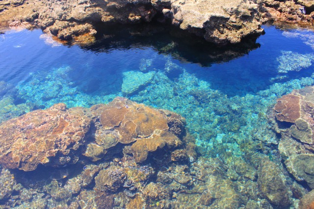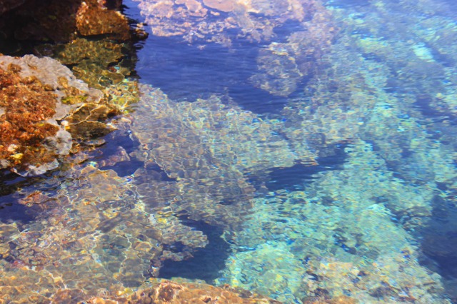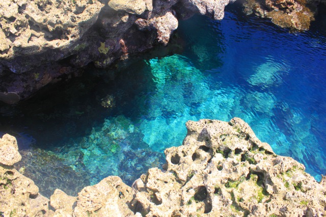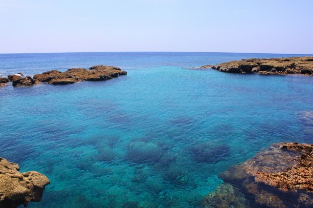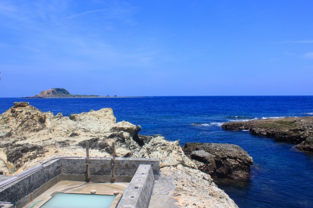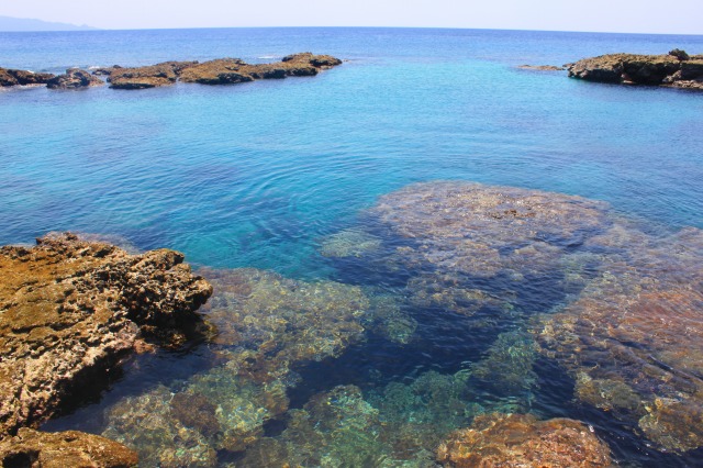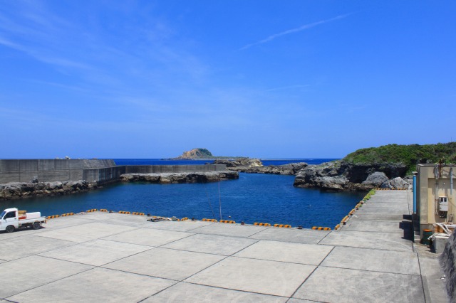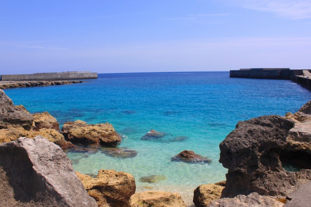 意気揚々と船から降りて真っ先に目に入るのは青い海。