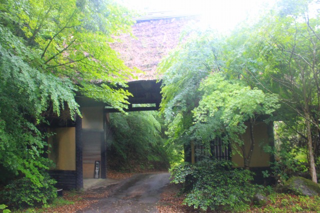 で、本当に突然現れる茅葺きの門。