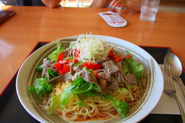 道の駅内のレストランにて期間限定冷製スパゲッティをご馳走になりました。