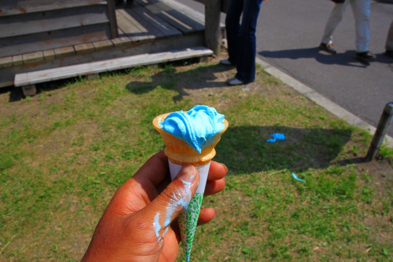 これ積丹ブルーなの? 綺麗なのは綺麗なんだけど、なんか道中の海とそんなに色変わらないんだけど。