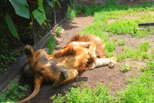 暑さでだらける百獣の王。