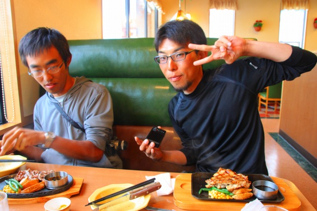 汗を流した後は一度ライダーハウス、緑湯さんで宿泊の手続きと支払いを済ませてから夕食へ。