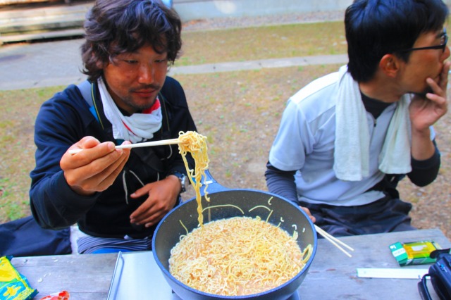 そっぴーさんは色々と混ざったラーメンを食べてから出発。