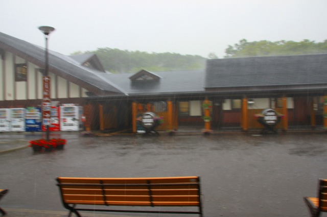 で、自転車置いて足湯に入ろうとした辺りで一気に大雨に。