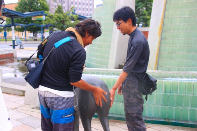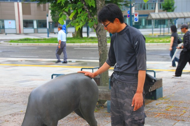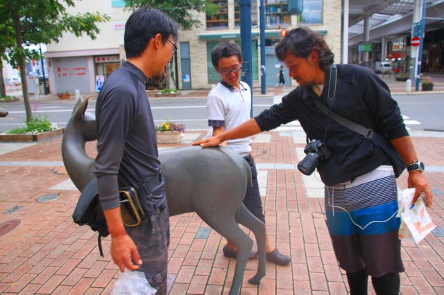 シカの銅像のヒップラインを確かめるそっぴーさん。