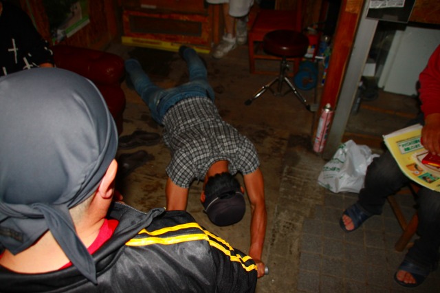 経緯はよく分からないけど、makiさんに対して腹筋ローラー土下座するトミーさん。