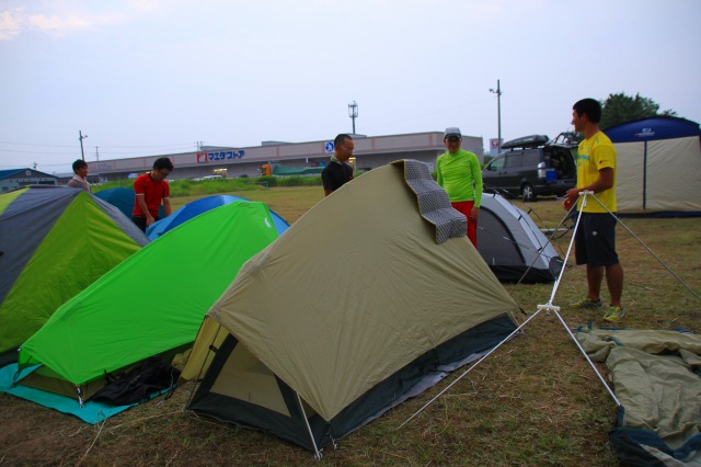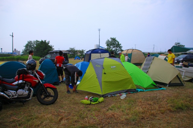 ある程度、というか思い切り密集してテントを張るチャリダー達。