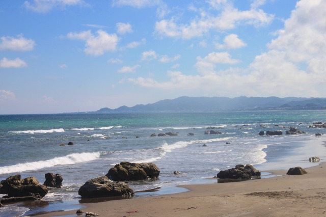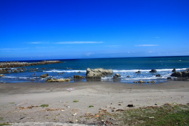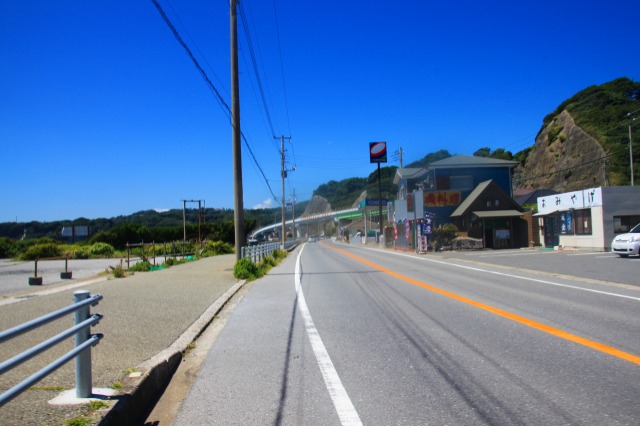 んで、海岸沿いを走って南下し、この写真を撮ったところで自転車乗りの二人組に声をかけて貰う。