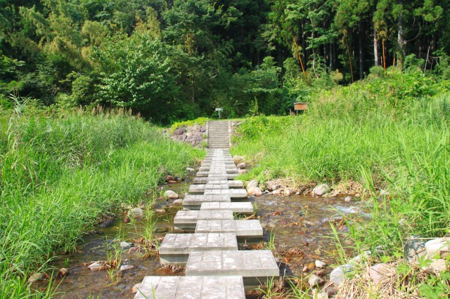 こんな感じで川渡って。