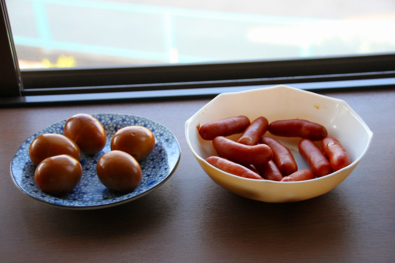 まぁウインナー自体燻製されているんですが、安いウインナーなので違いが歴然ですね。