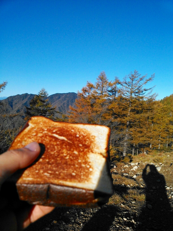 山頂で食べると美味しく感じるね、例え少々焼きすぎていても。