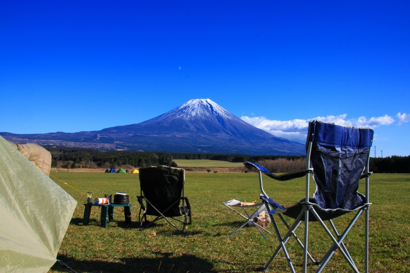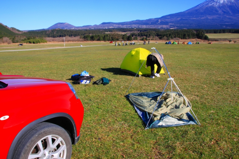 途中、右手で事故っている車を、左手に富士山を眺めながらタイトル通り、ふもとっぱらへ。