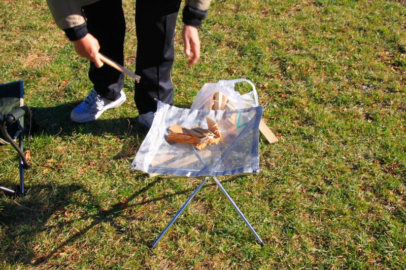 その後、テント張った場所に戻って薪に火を付ける為に悪戦苦闘。