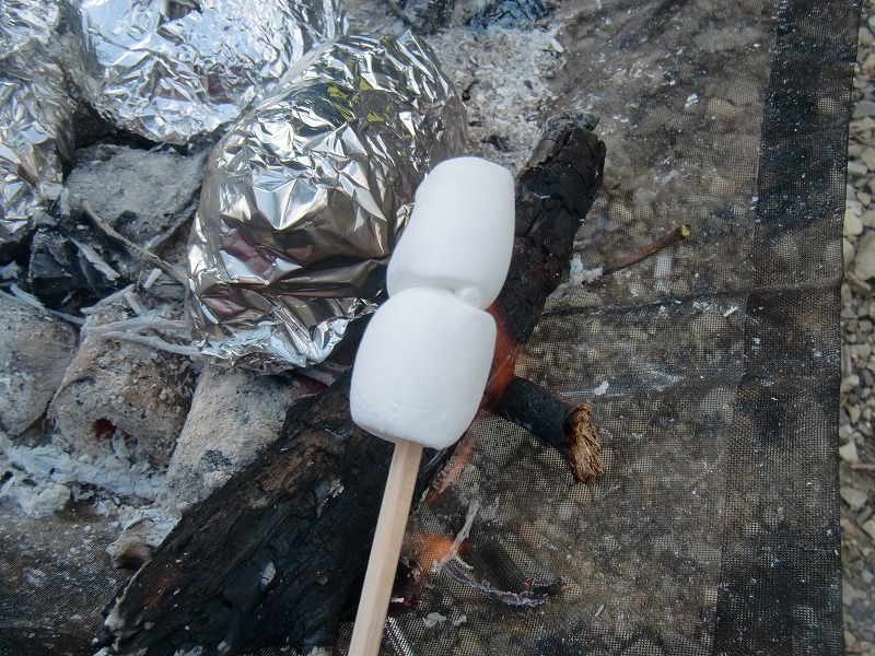 もはやこれがないと始まらない、キャンプの定番焼きマシュマロ。