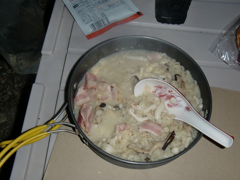 抹茶さんが作ってくれたベーコンときのこの雑炊。