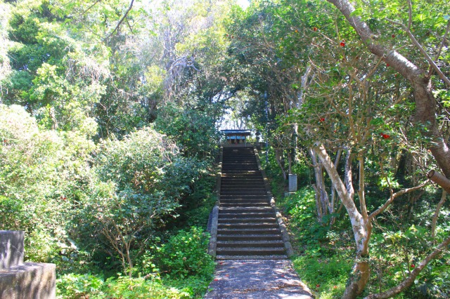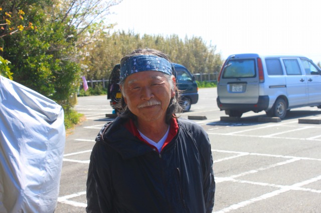 お参りをした後、西側から串本に向かっていると下り坂の途中である人を発見。