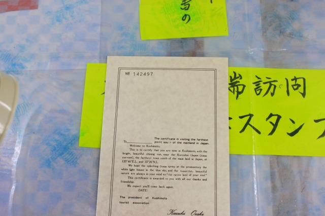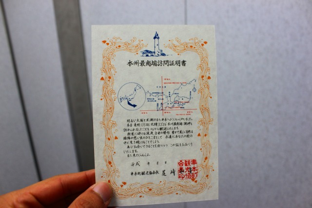 んで、お次は本州最南端の証明書を貰いに……