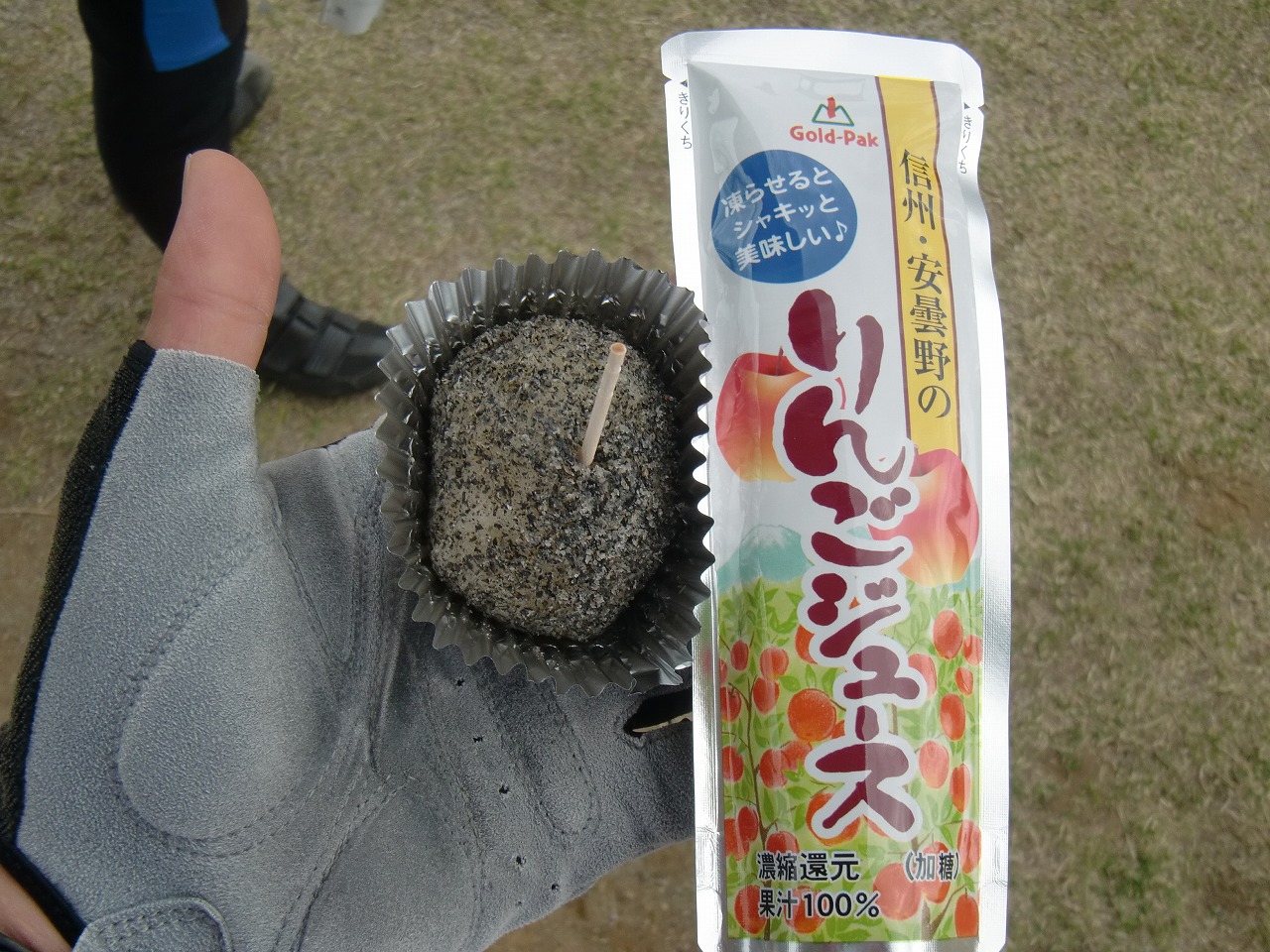 第六エイドのリンゴジュースとおはぎ。