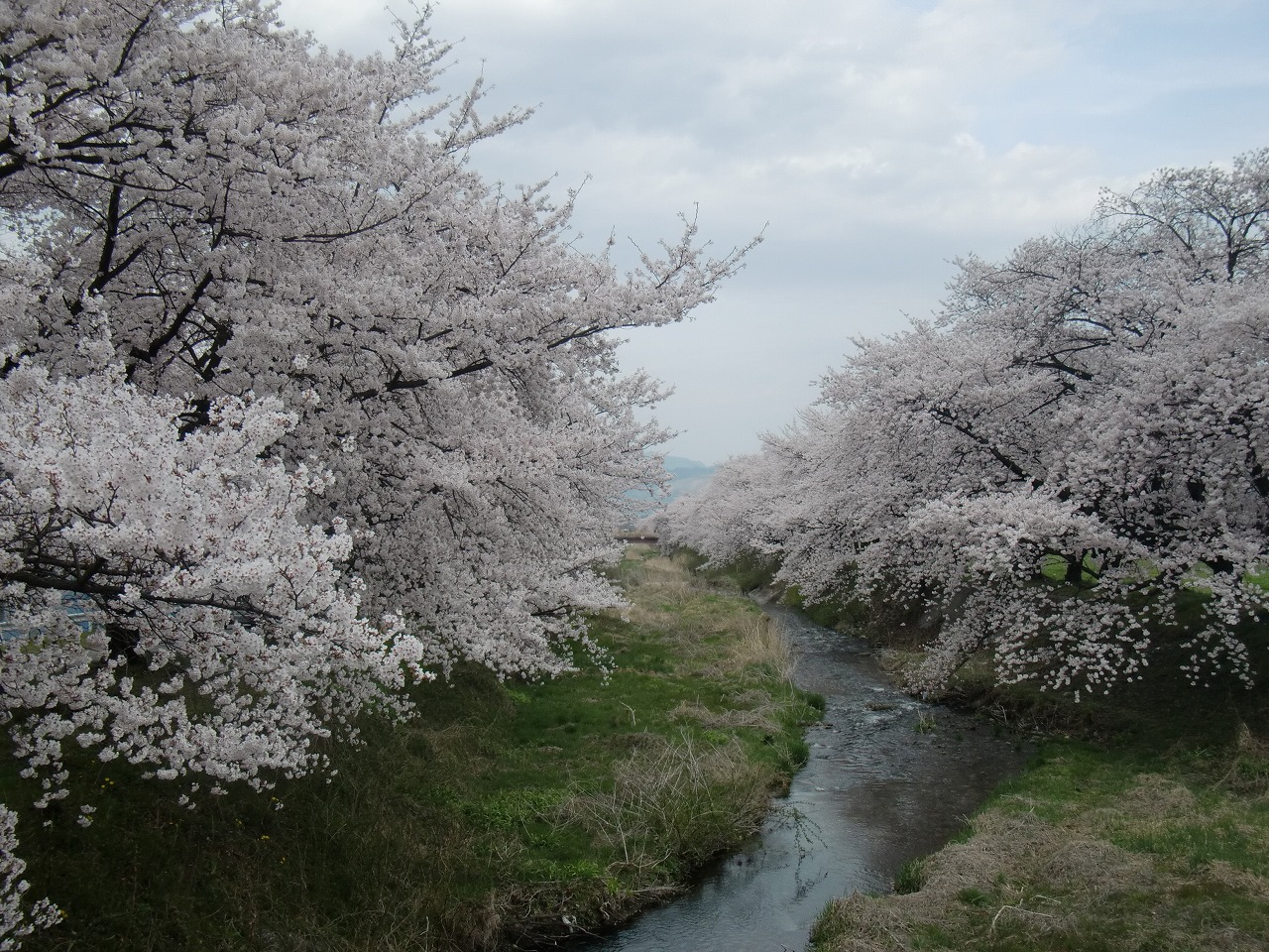 途中の橋から見た桜。