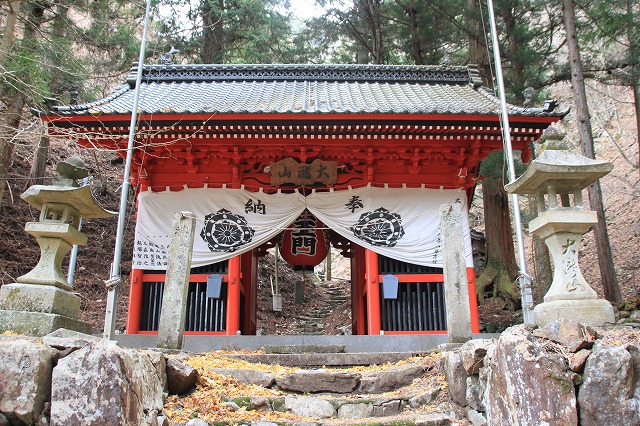 仁王門を通って階段を上り、本堂の横を抜けて山道へ。
