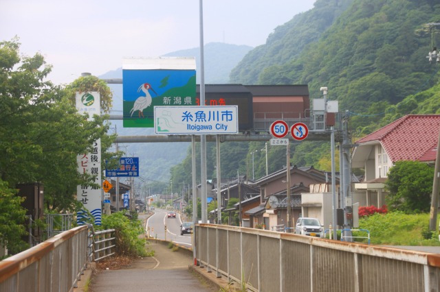 道の駅なめりかわで起床。 テント張らずにベンチに寝ていたんだけど、やっぱマットは敷いた方がいいような気がする。 昨夜お話した男性に挨拶してから出発。 富山の街中を抜けて迂回させられたりしながら 新潟県に突入。 そしてここ …
